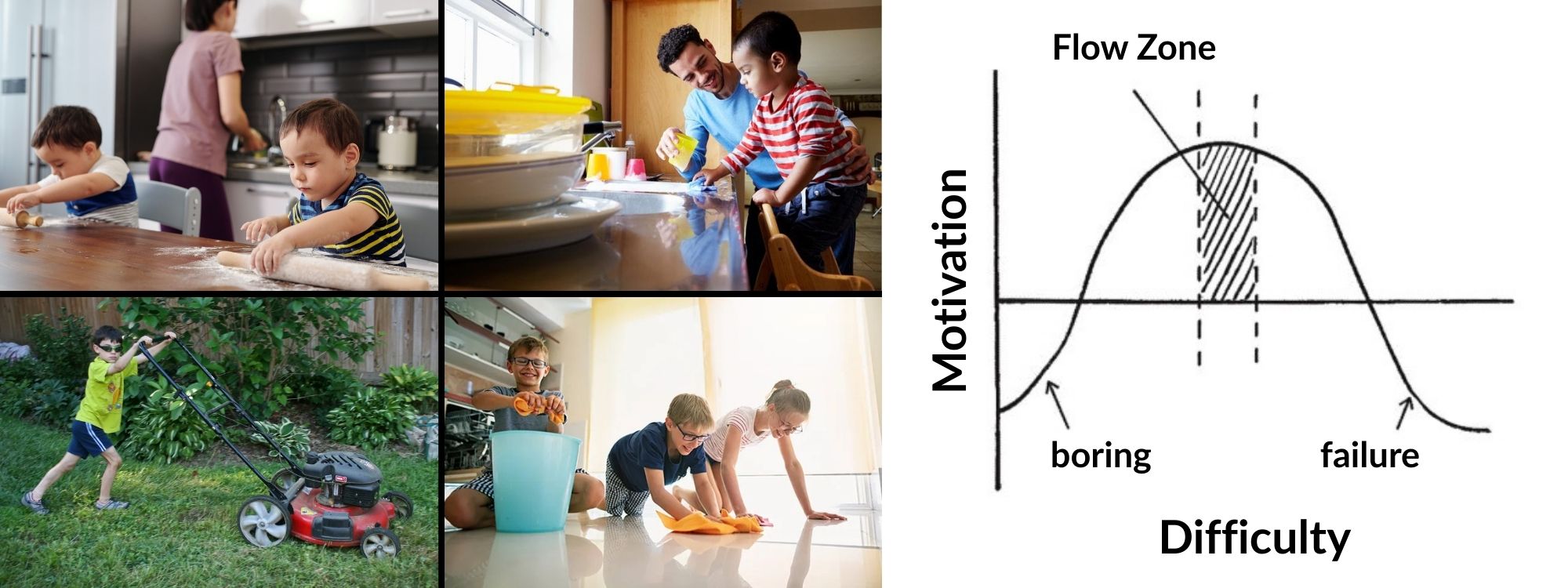 Kids need to be able to deal with difficult things but exposing them to tasks that are not important or too easy and they lose interest. *pro tip- increase the challenge/fun of easy tasks (eg. make easy tasks a race).